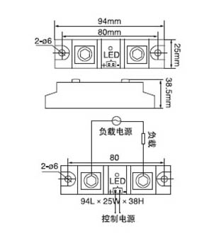 四. 大功率固態繼電器外形尺寸和安裝接線圖:(單位:mm)