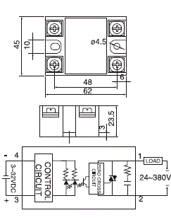 四. 單相固態繼電器外形尺寸和安裝接線圖:(單位:mm)