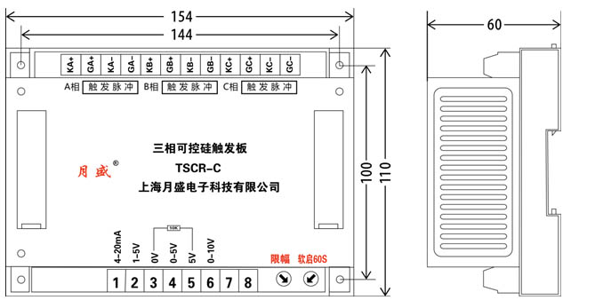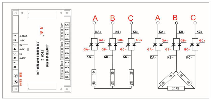 TSCR-C(完全替代老型號TSCR-B)三相可控硅觸發板(觸發器):本控制板由高性能單片機作為控制、運算放大器、脈沖變壓器等單元組成.用來觸發可控硅實現移相調壓功能,輸出線性化程度高,輸出起控點低,對負載電壓實現無級調節,本公司專業從事研發十幾年,有著多種現場應用經驗,多次改板優化,三相平衡度,稱相對稱性,抗干擾等,均達到爐火純青地步,對三相調壓、調光、焊機、控溫、充電、三相整流、直流電機調速、勵磁、電鍍、電解、水處理、也可用于三相電機軟啟動、變壓器的原邊調壓、風機調速、力矩電機調速等設備.